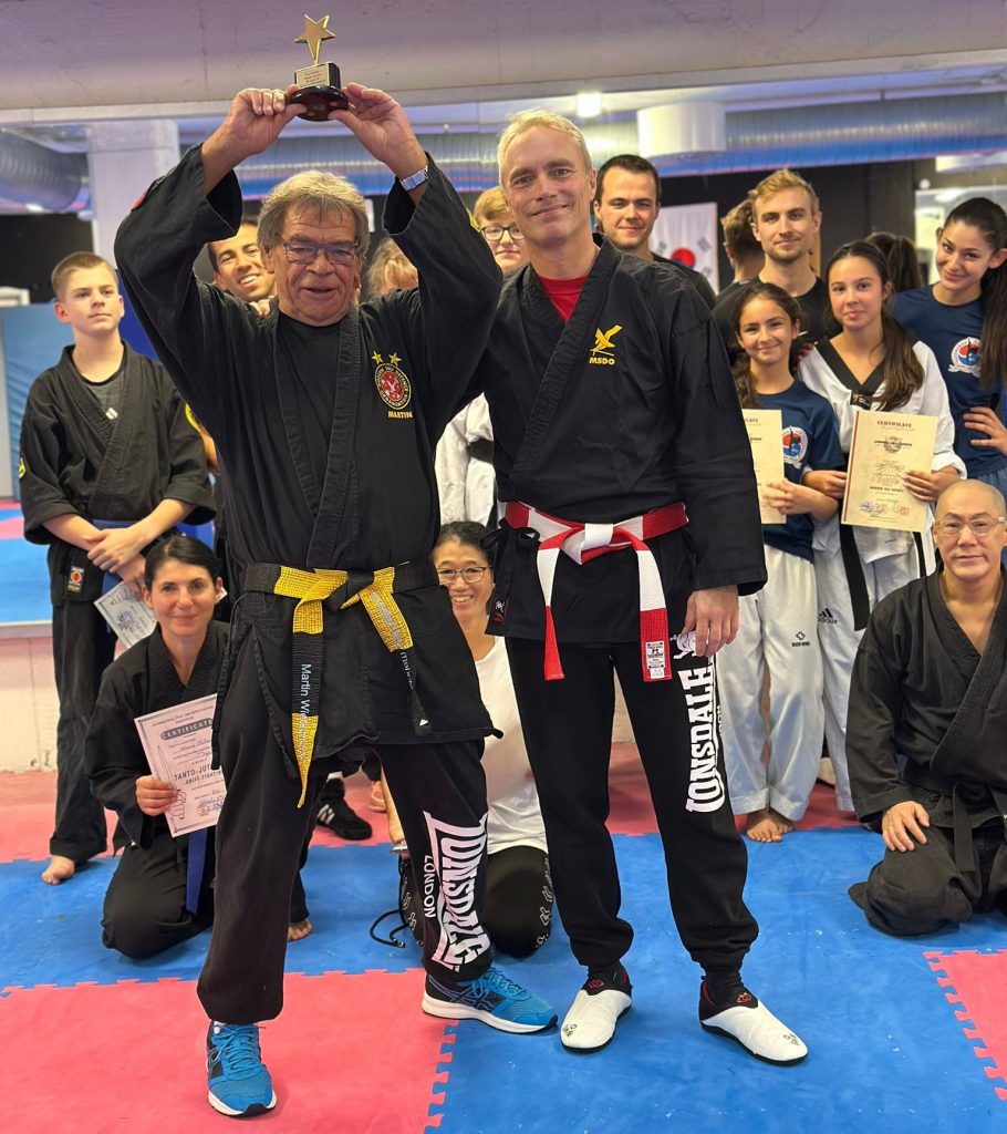 Zum Abschluss des Lehrgangs erhielt Wietschorke im Auftrag der Taek wan Do Organization Schweden einen Ehrenpokal vom schwedischen Taek Wan Do Großmeister überreicht. Peter Rollfelt erklärte Wietschorke ist maßgeblich an der Entwicklung der modernen Selbstverteidigung in Schweden beteiligt. Viele Gruppen in Schweden unterrichten M.S.D nebenbei zu Ihren Trainingsprogramm auch wenn sie aus anderen Kampfsportarten kommen bzw. diese trainieren. Durch einige Auftritte im schwedischen Fernsehen sowie etlichen Zeitungsberichten und natürlich durch zahlreiche Lehrgänge in Skandinavien hat Wietschorke in der Kampfsportszene dort eine sehr positive Popularität erreicht Sichtlich gerührt , von den Worten des schwedischen Großmeisters, bedankte sich der Northeimer Großmeister bei Peter Rollfelt für die Organisation des Trainingscamps und die herzliche Aufnahme und Betreuung der Teilnehmer aus Deutschland , England und Skandinavien, nahm unter großen Beifall der Teilnehmer die Ehrung und Auszeichnung entgegen und lobte den technischen Stand der Stockholmer Taek wan Do Kämpfer und Kämpferinnen.
